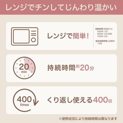 電子レンジで温めるだけで約20分間、約40℃の心地よい温かさが持続。忙しい日常でも、寝る前の小さな温活習慣やリラックスタイムに最適です。