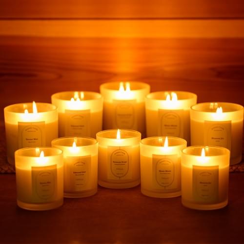 【自然由来のやさしいキャンドル】パラフィン・BPA・鉛フリー。ソイワックス70%+蜜蝋30%で、煙やススが少なく、安定した炎を実現。