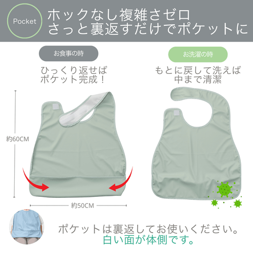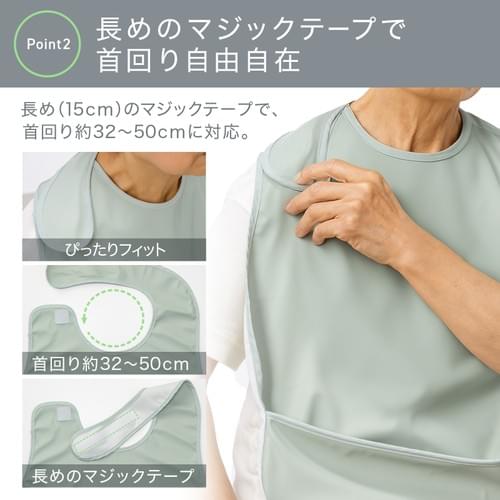 介護エプロン 簡単着脱&清潔設計 首元快適 スモーキーアクア